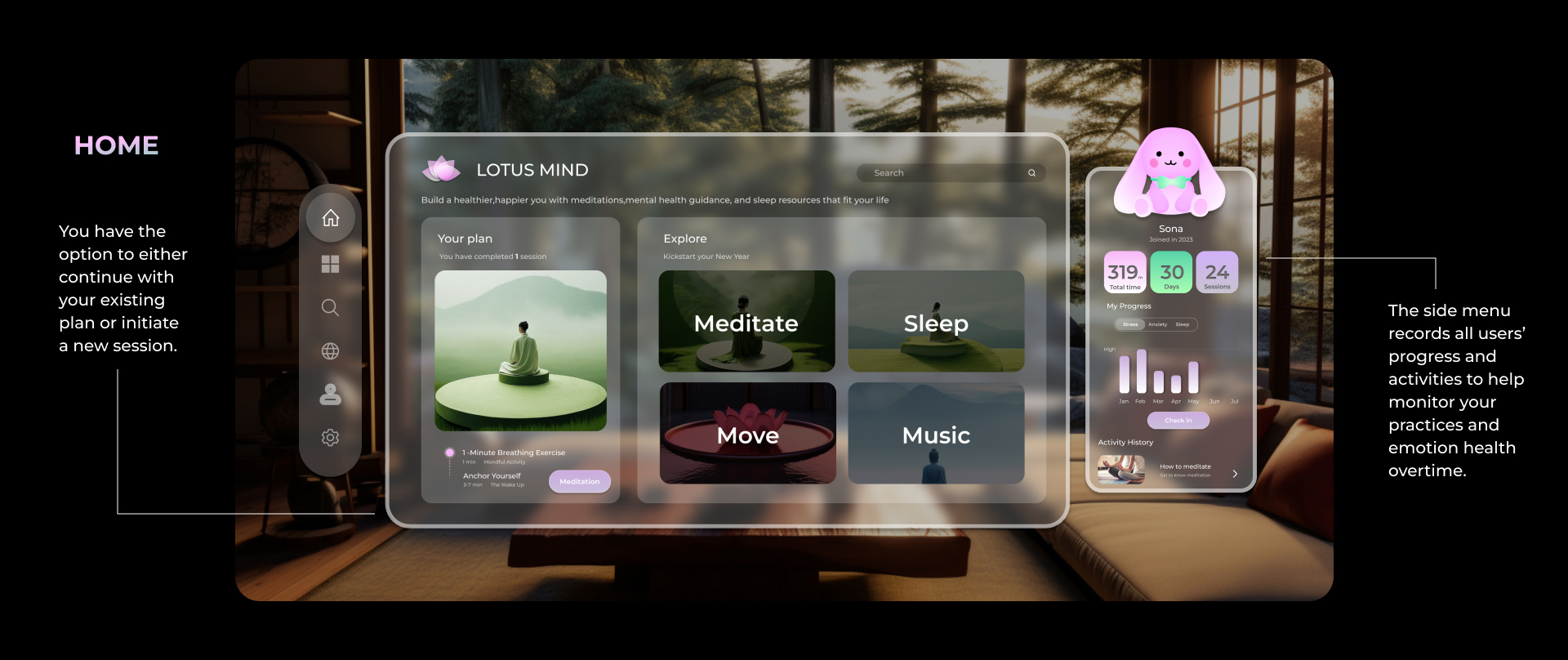Lotus mind seamlessly integrates VR with traditional practices, providing customized sessions and the opportunity to explore unseen destinations.